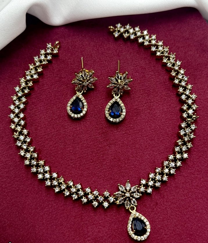 A beautiful artificial American diamond short necklace with matching earring.
