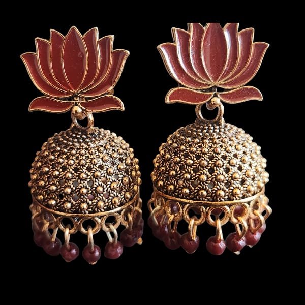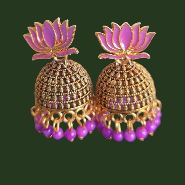 Lotus Motif Traditional Jhumka Earrings
