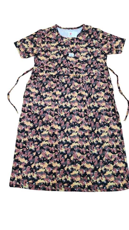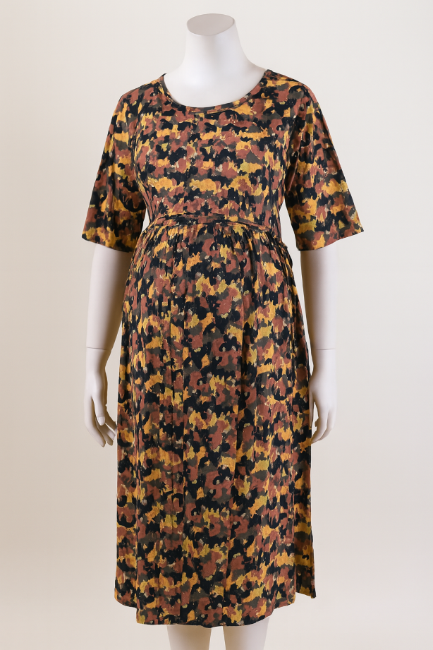 Comfortable Grey maternity dress with colorful , short sleeves, and adjustable tie-up waist for a perfect fit. Ideal for daily wear, casual outings, and pregnancy comfort.