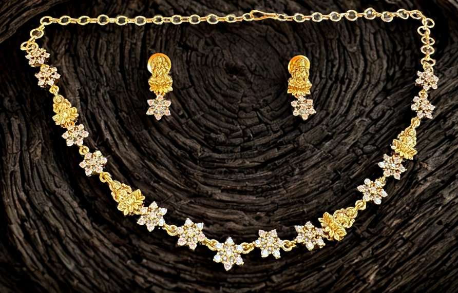 A beautiful AD stone Lakshmi design short necklace with matching earring.