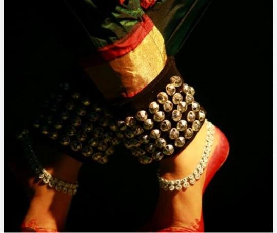A beautiful 5 layer salangai in brown leather base for Bharatanatyam