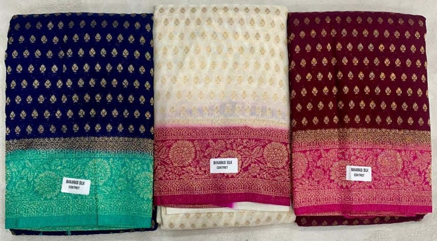 A beautiful Banarasi silk saree comes with different colors.
