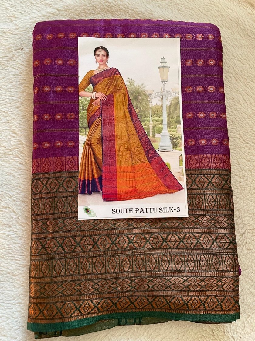 A beautiful south pattu saree comes with running blouse.