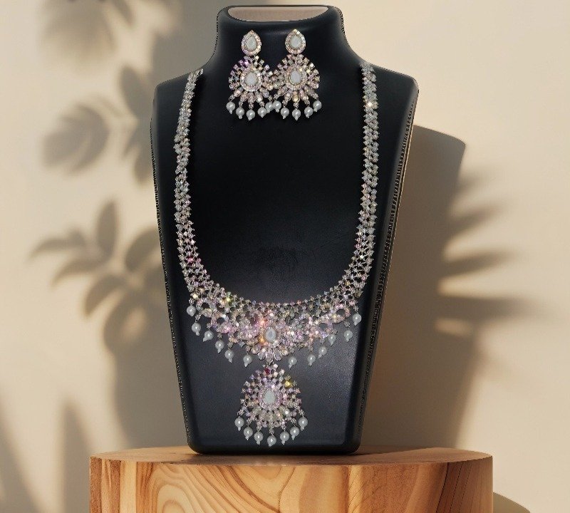 Beautiful long silver haram with matching earring.