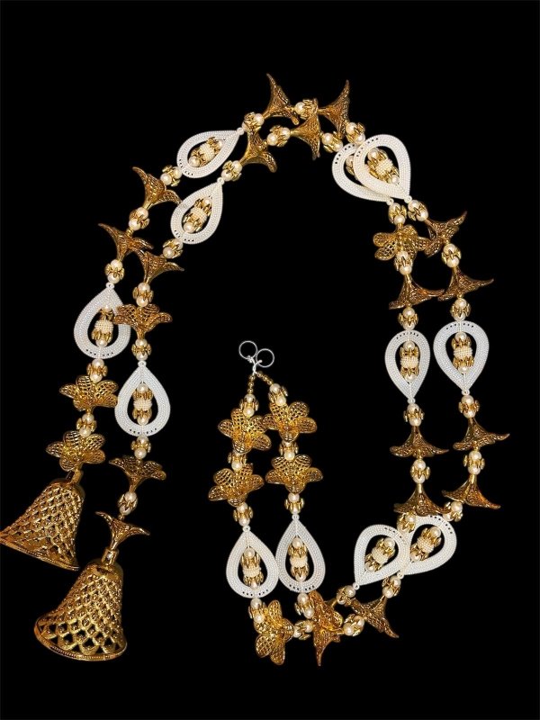 A beautiful wall hanging with gold plated flower and bells.